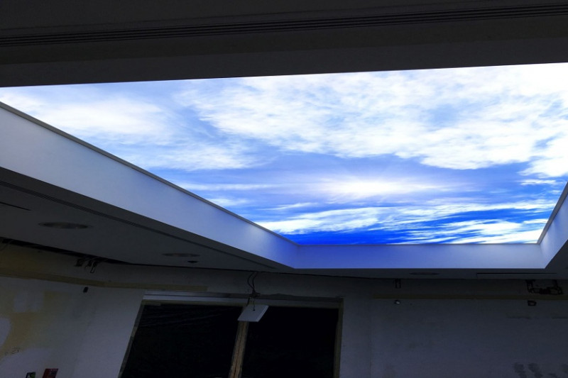 Одним из преимуществ парящего потолка является то, что он изготовлен из высококачественного экологичного материала, который не несет никакого вреда для здоровья. Что касается подсветки, то ее установка проводится с соблюдением всех норм, и как результат – использование осветительных элементов является полностью безопасным.