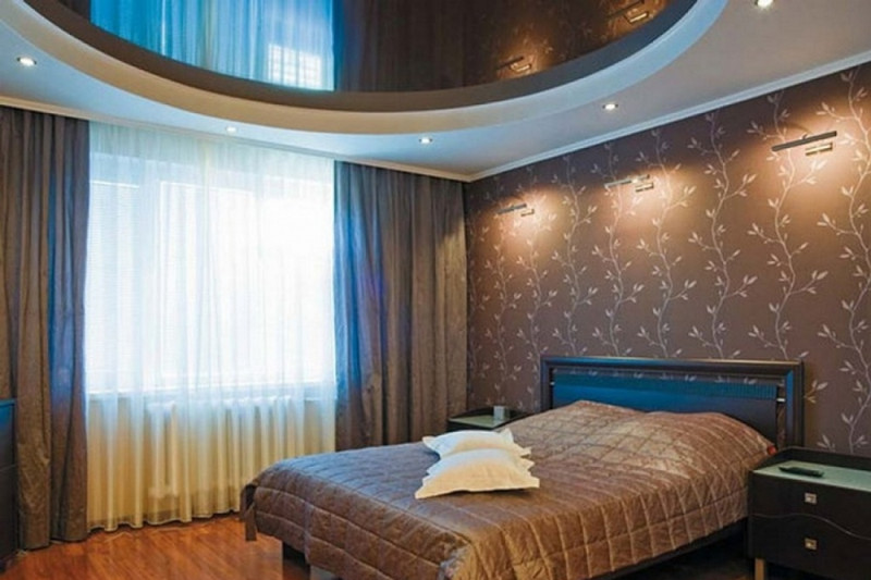 Двухуровневые натяжные потолки можно делать из различных типов материалов – глянцевых и матовых полотен, тканевых вариантов и т.д. Их цвета и текстуры также могут быть различными.
