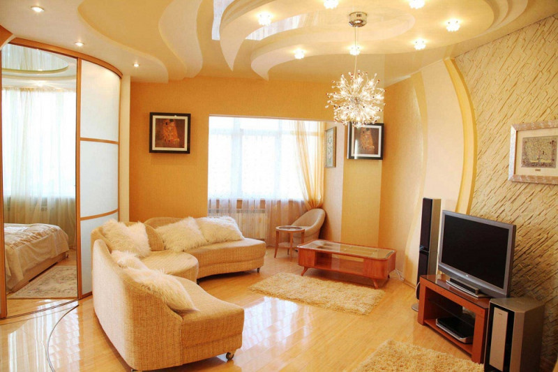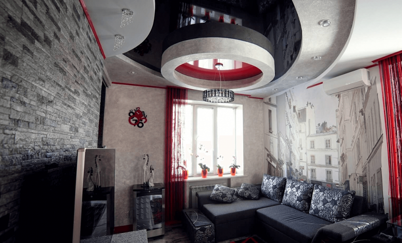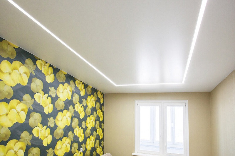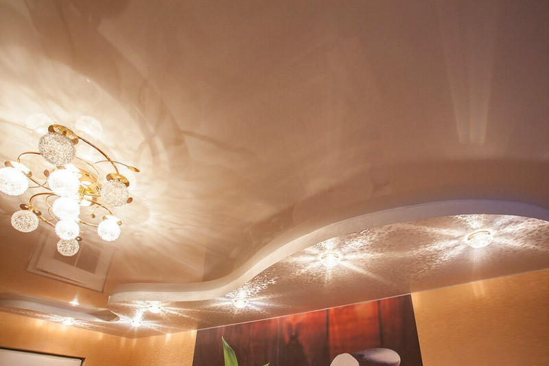 - Отсутствие необходимости выравнивать поверхность потолка перед установкой, так как натяжные полотна скрывают все неровности.