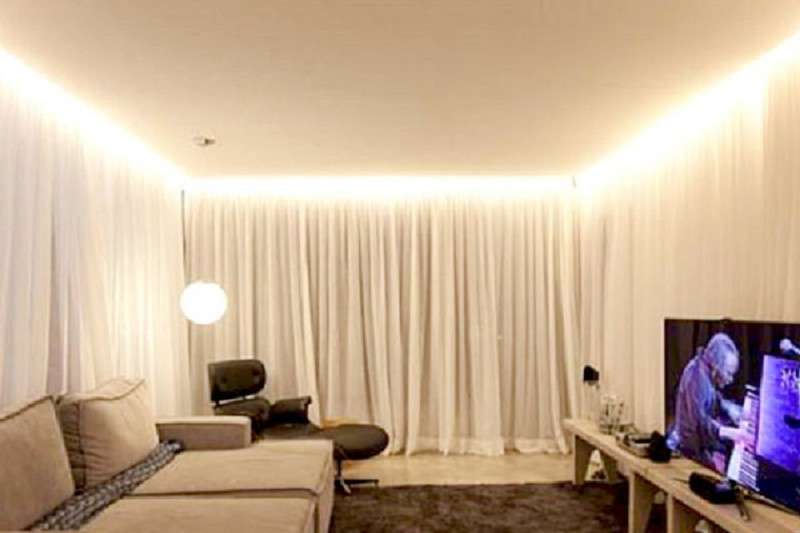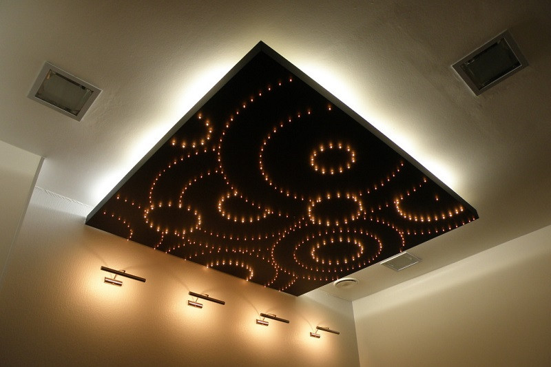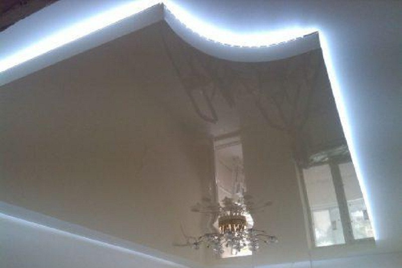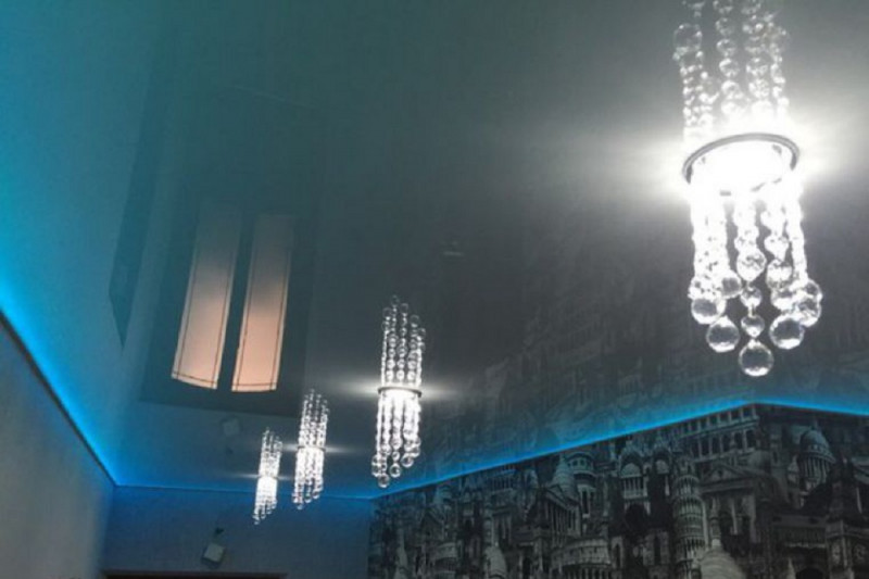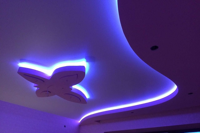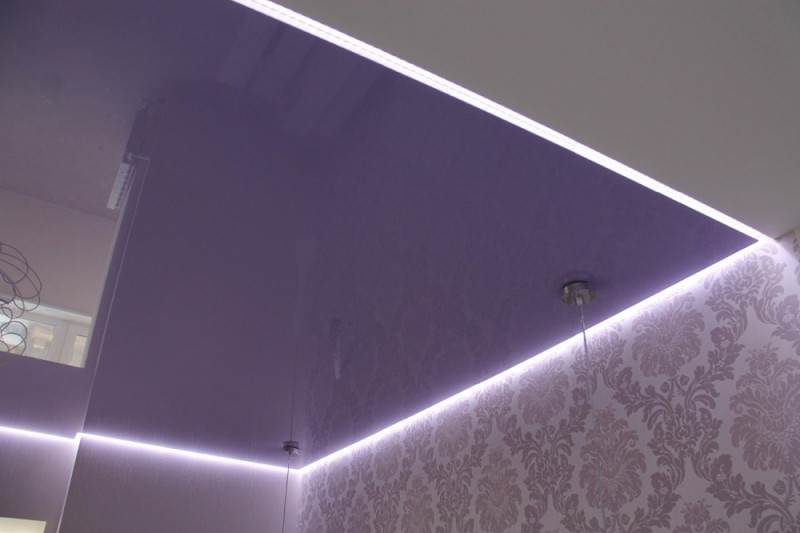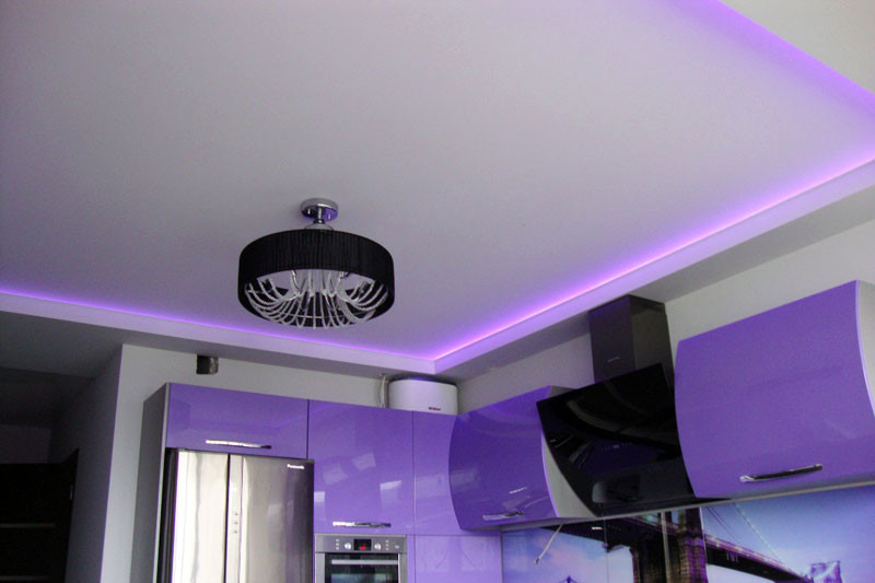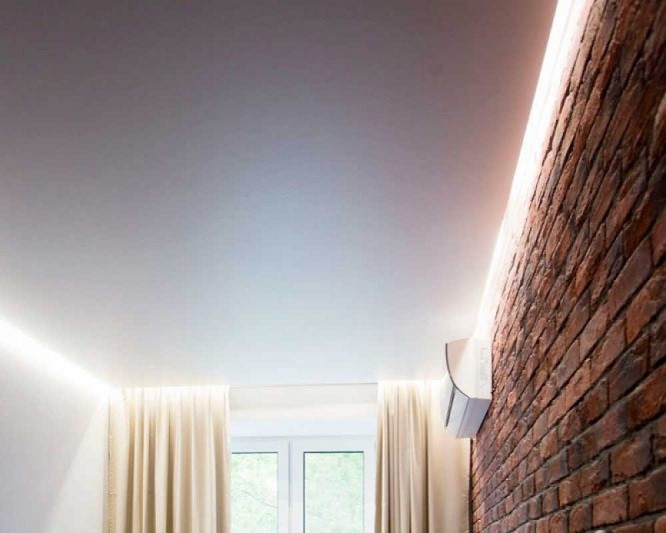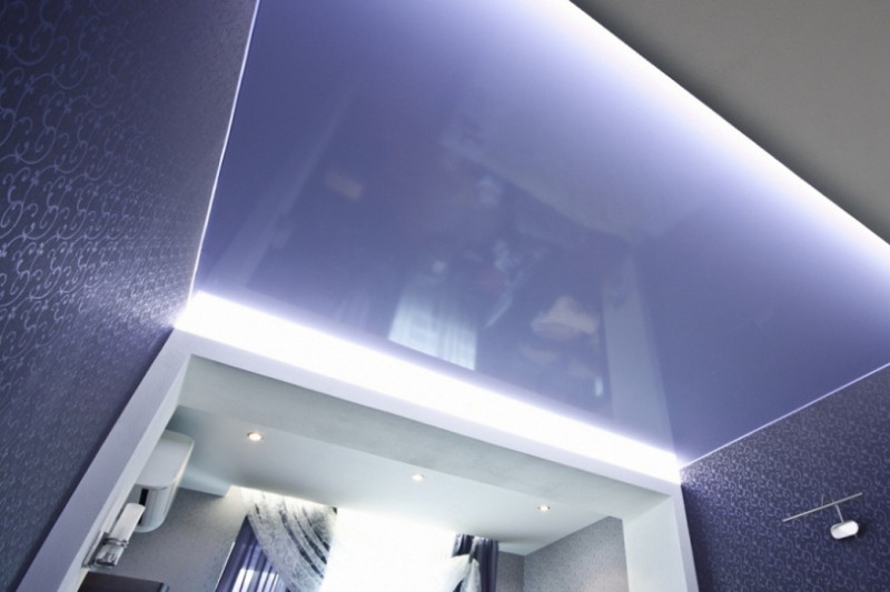 - Оригинальный дизайн – благодаря наличию особой подсветки создается эффект, будто потолок не прикреплен к стенам.