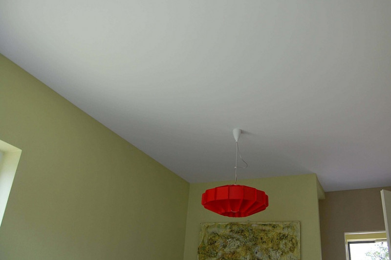 Такой потолок не накапливает пыль, благодаря чему частая уборка не потребуется. Достаточно периодически протирать его сухой или влажной салфеткой их мягкой ткани.